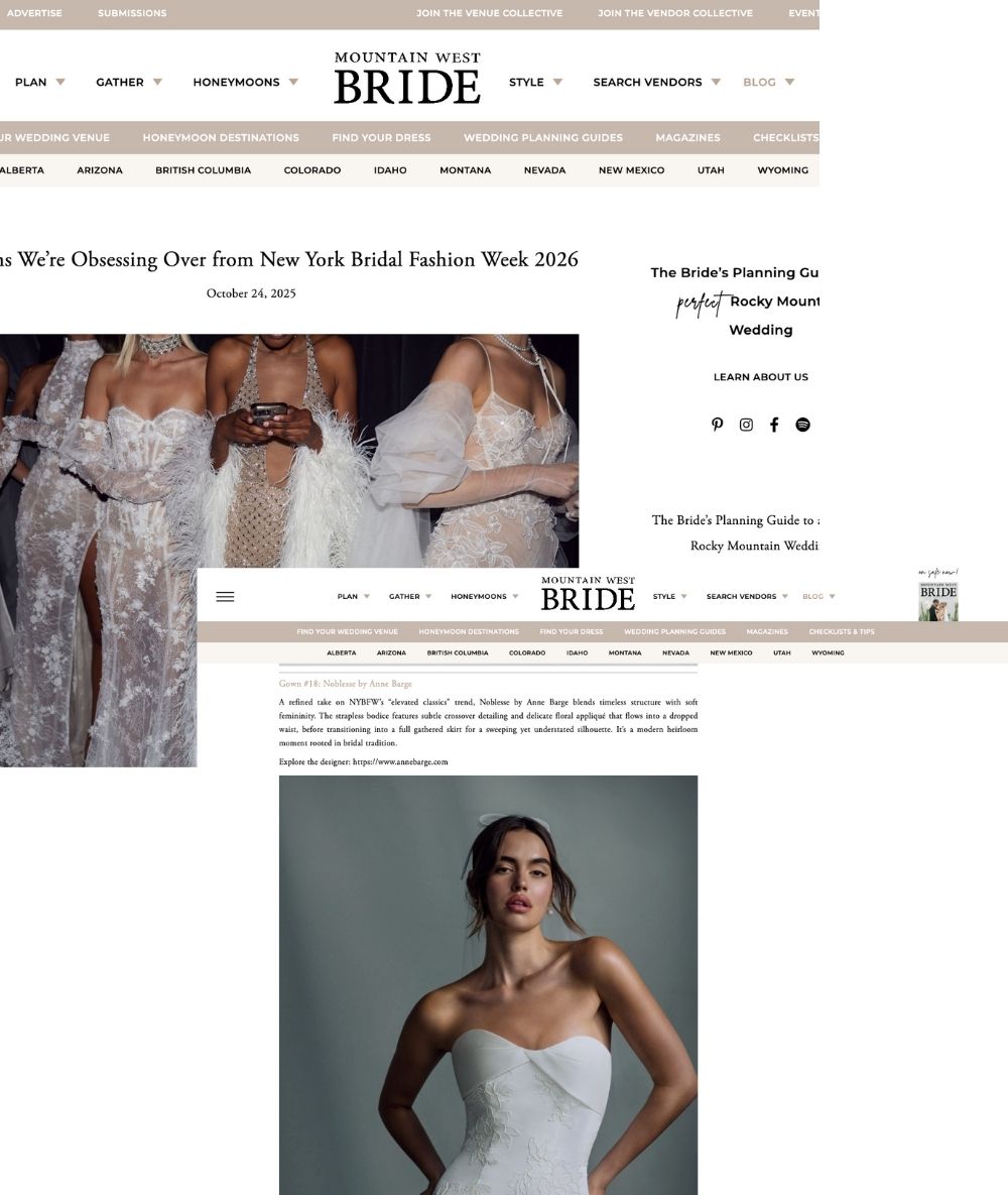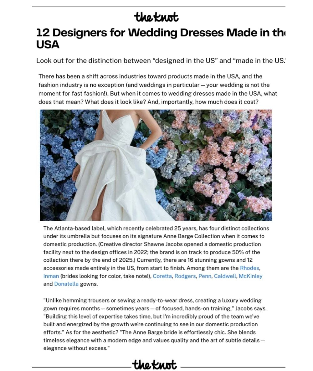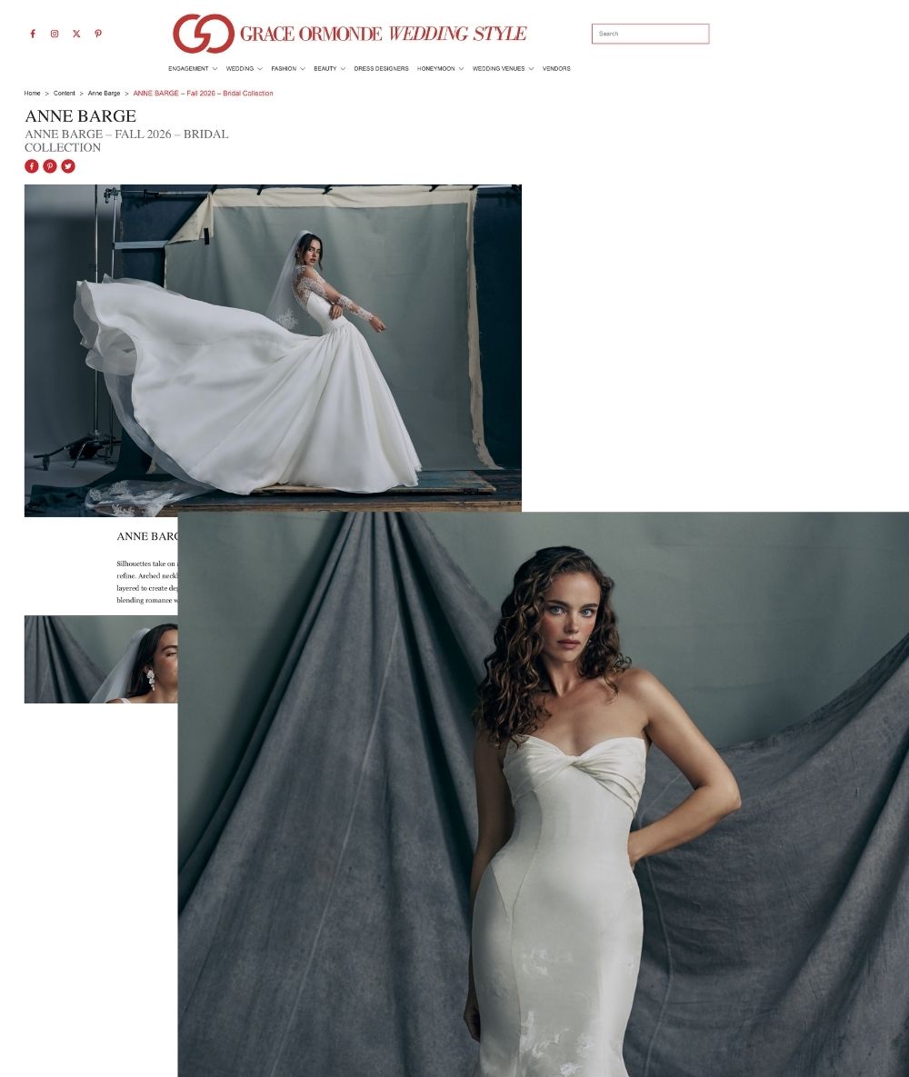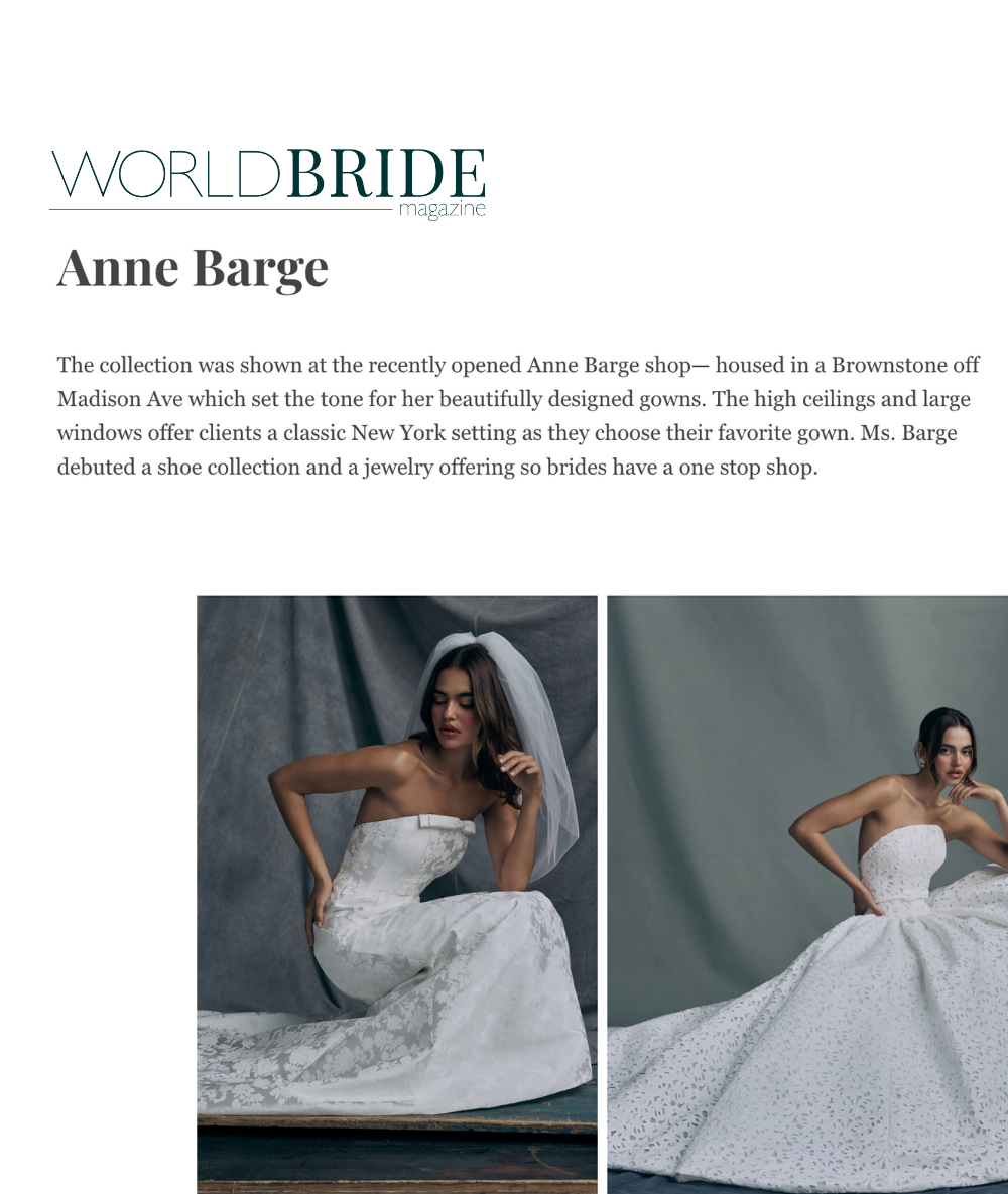 "Anne Barge has secured itself an inimitable place in the heart of virtually every fashion-forward bride-to-be" - Martha Stewart